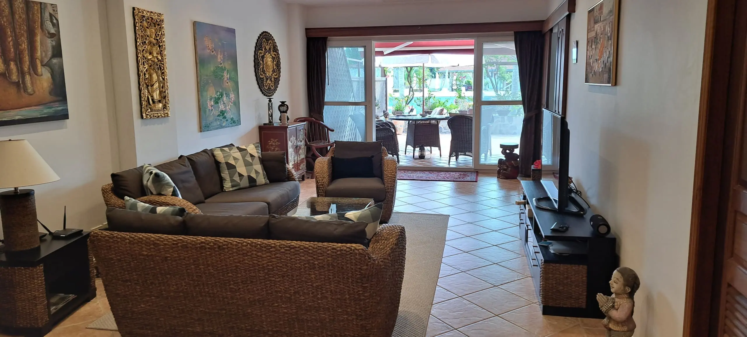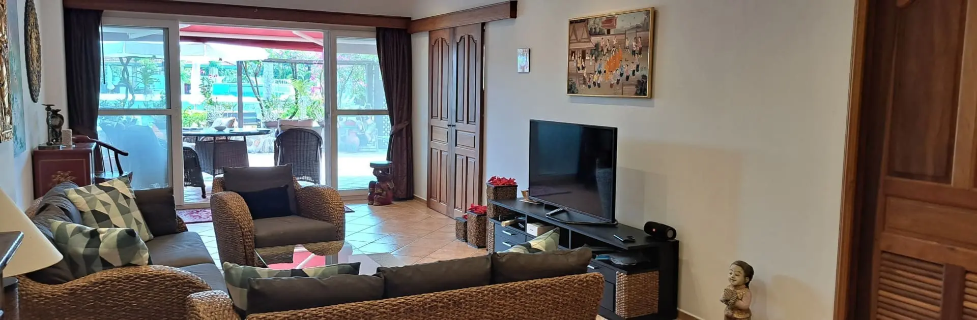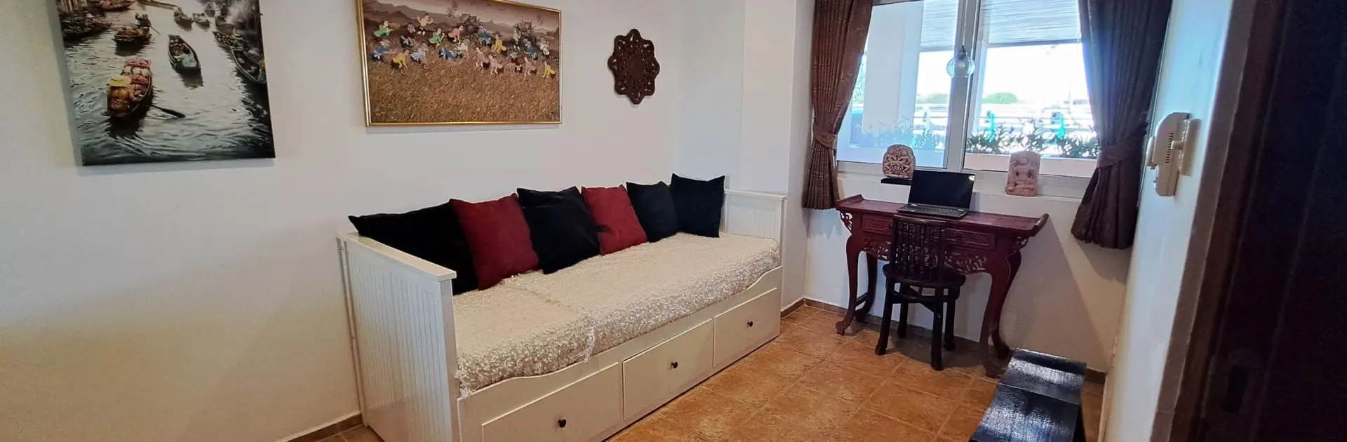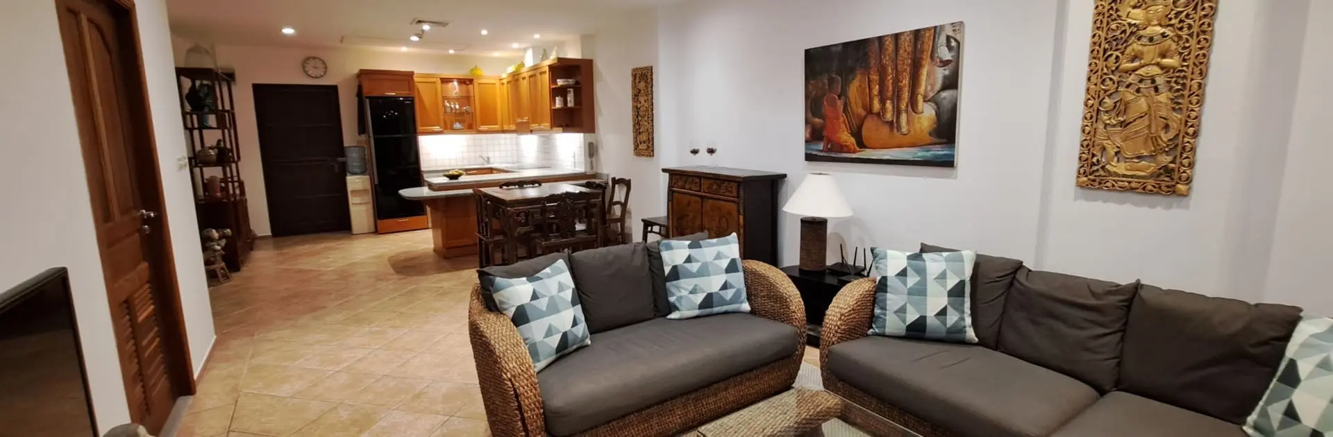 Lägenhet med vardagsrum och kök i öppen planlösning, två sovrum, två badrum samt terrass om ca 60 kvm. Vid närmare samtal om objektet informerar vi om vad som ingår i köpet, såsom möbler.