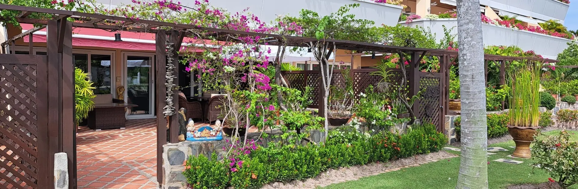 - Två sovrum, två badrum, vardagsrum och kök i öppen planlösning, stor markterrass